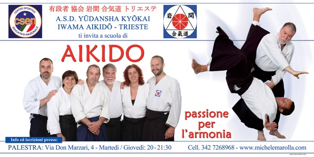 Trascritto in kanji è 有段者 協会 岩間 合気道 トリエステ.