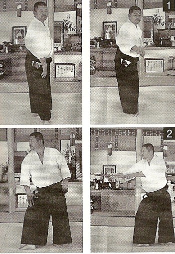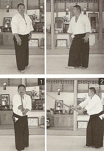 Nelle due immagini a sinistra, essa è dimostrata in solitaria, mentre nelle due immagini a destra nel corso dell’esecuzione esemplificativa di Morotedori Kokyu Ho.