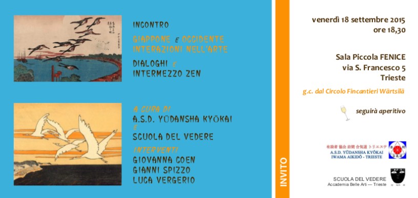 L’associazione Sportiva Dilettantistica Yūdansha Kyōkai Iwama Aikidō Trieste e la Scuola del Vedere – Accademia delle Arti Trieste, sono lieti di presentare un’incontro ad ingresso libero che avrà luogo venerdì 18 settembre 2015, alle ore 18.30 nella Sala Piccola Fenice di via San Francesco 5, a Trieste, dal titolo