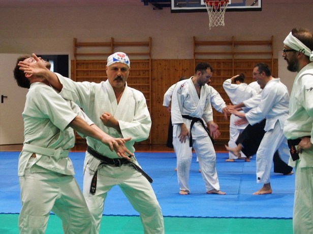 I due insegnanti che hanno diretto il koshukai nell’ampia palestra maggiore dell’Opera Figli del Popolo di Largo Papa Giovanni XXIII, nel centro di Trieste, si sono alternati nelle varie sessioni di pratica – due keiko (sedute di pratica) sabato mattina, due keiko sabato pomeriggio e, ancora, due keiko nella domenica mattina – seguendo praticanti provenienti principalmente dal capoluogo giuliano ma, anche, dal resto del Friuli Venezia Giulia (Gorizia, Udine e Sacile), dall’Emilia Romagna e dal Lazio.