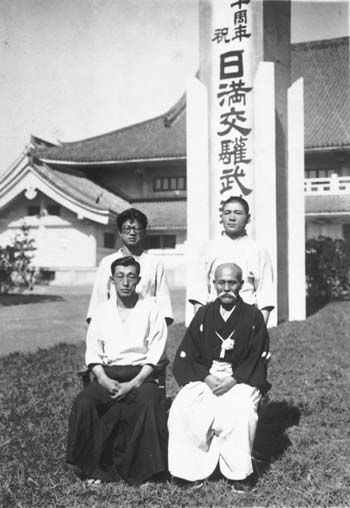 Tra il 1936 e la fine della seconda guerra mondiale Kenji Tomiki risiedette nel Manciukò [Manciuria occupata – info] dove insegnò Aikibudo – come allora si chiamava l’Aikido – all’esercito di Canton e presso la sede locale del Kunai-Sho [info], o Ministero della Casa Imperiale.