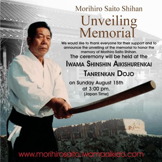 Sabato 15 agosto 2021, alle 15 (ora locale), verrà scoperto ed ufficialmente inaugurato il monumento in memoria di Saito Morihiro Shihan presso il Tanrenkan Dojo dell’Iwama Shin Shin Aiki Shurenkai a Iwama, Ibaraki (Giappone).