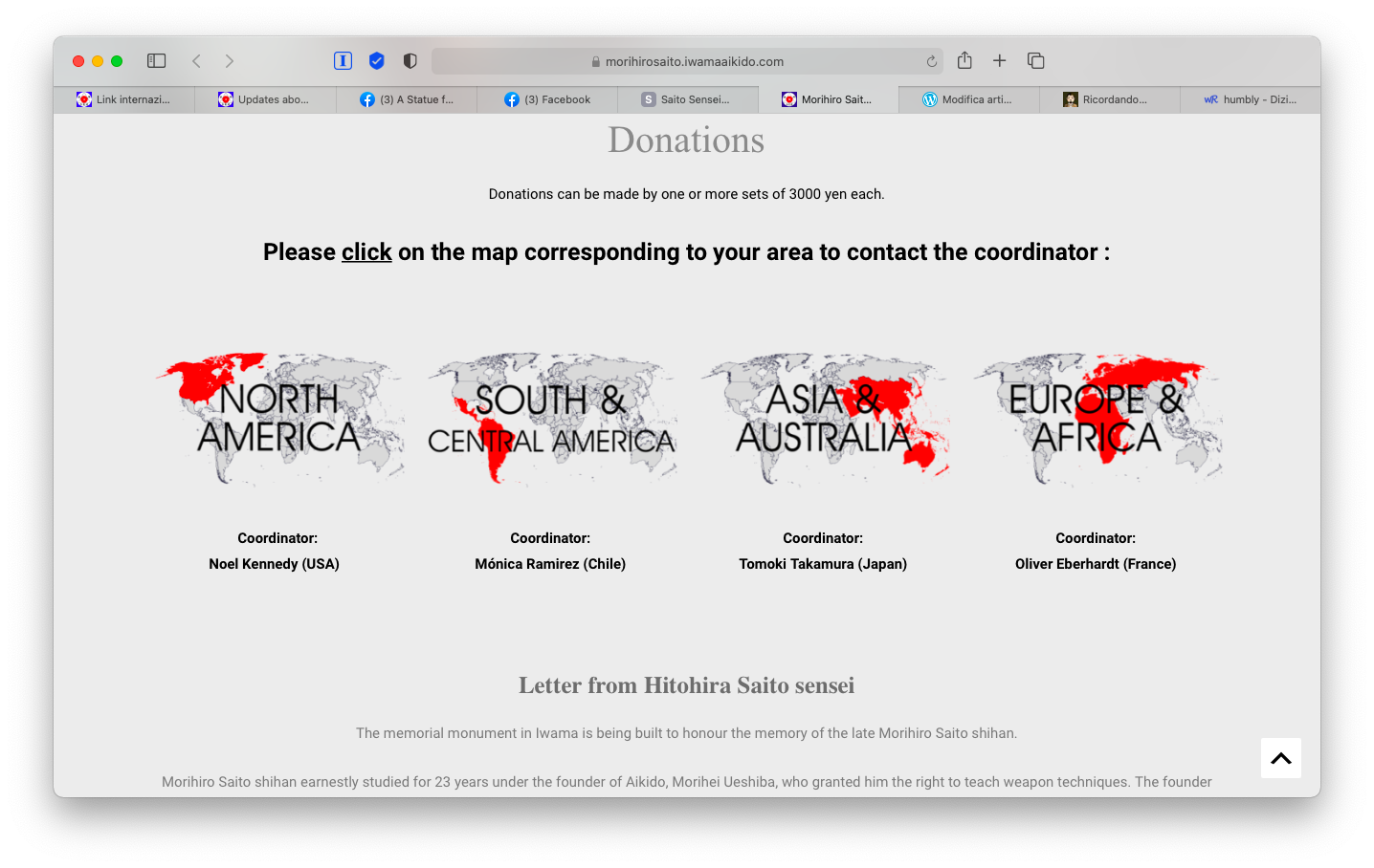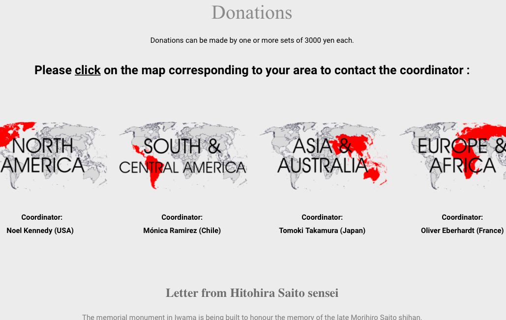 Sono trascorsi 19 anni dalla scomparsa di Saito Morihiro e da allora numerosi praticanti di Aikido hanno adottato le tecniche di Aikiken e Aikijo insegnate da Saito Morihiro. Quindi, a questo punto, abbiamo umilmente aperto questo sito per le donazioni a tutti coloro che vogliano contribuire alla realizzazione del Memoriale per onorare la memoria di Saito Morihiro Shihan.