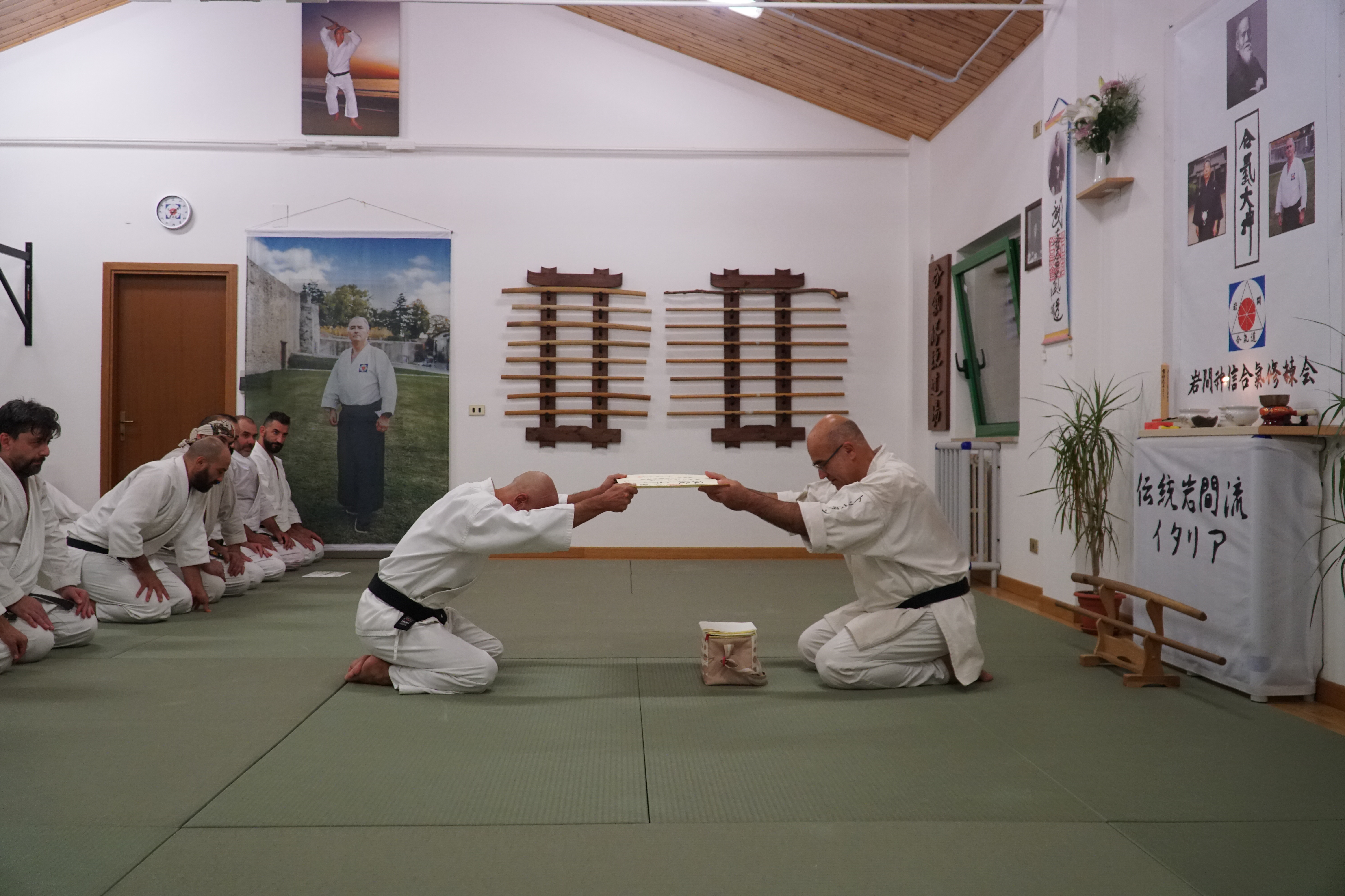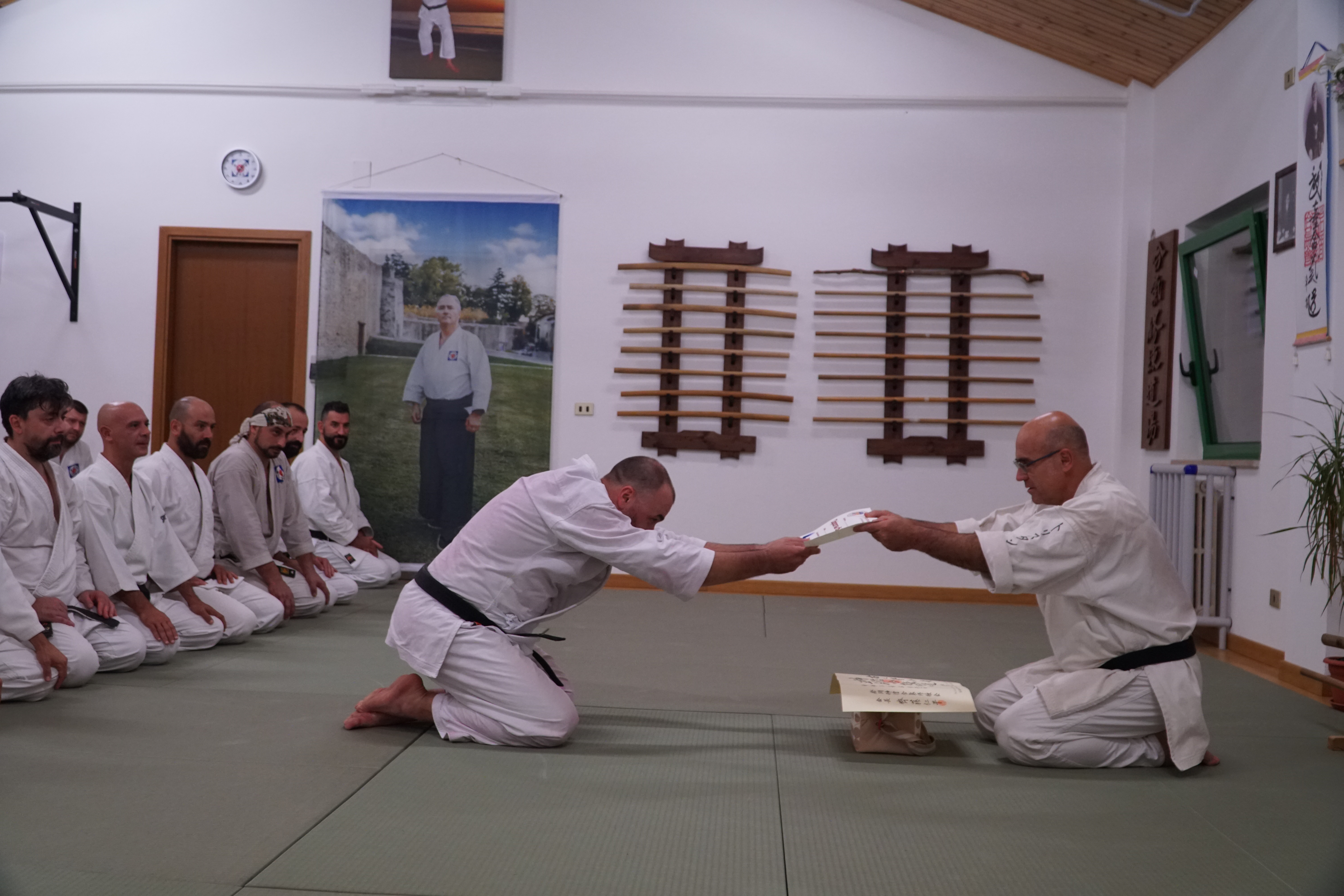 Non sono mancati momenti di approfondimento culturale, etico e filosofico, ad esempio quando il maestro ha voluto istruire i presenti sull’opportuno reishiki per la cerimonia tradizionale di conferimento dei diplomi di grado o sull’adeguata attitudine che si vorrebbe connaturata agli alti gradi della scuola o, ancora, sul corretto modo di adempiere alle mansioni di otomo (assistente del maestro), oppure sugli opportuni accorgimenti in merito a puntualità e prontezza anche in occasioni conviviali assieme ad un insegnante.