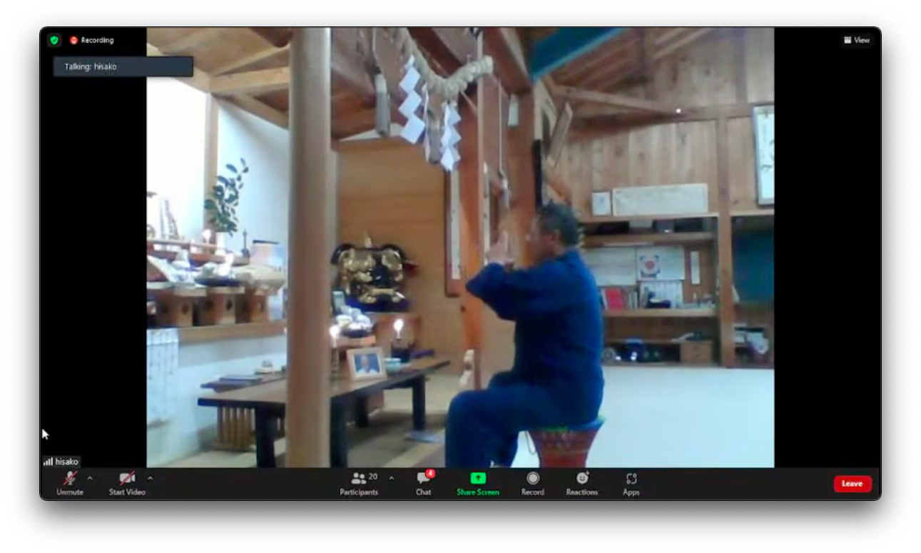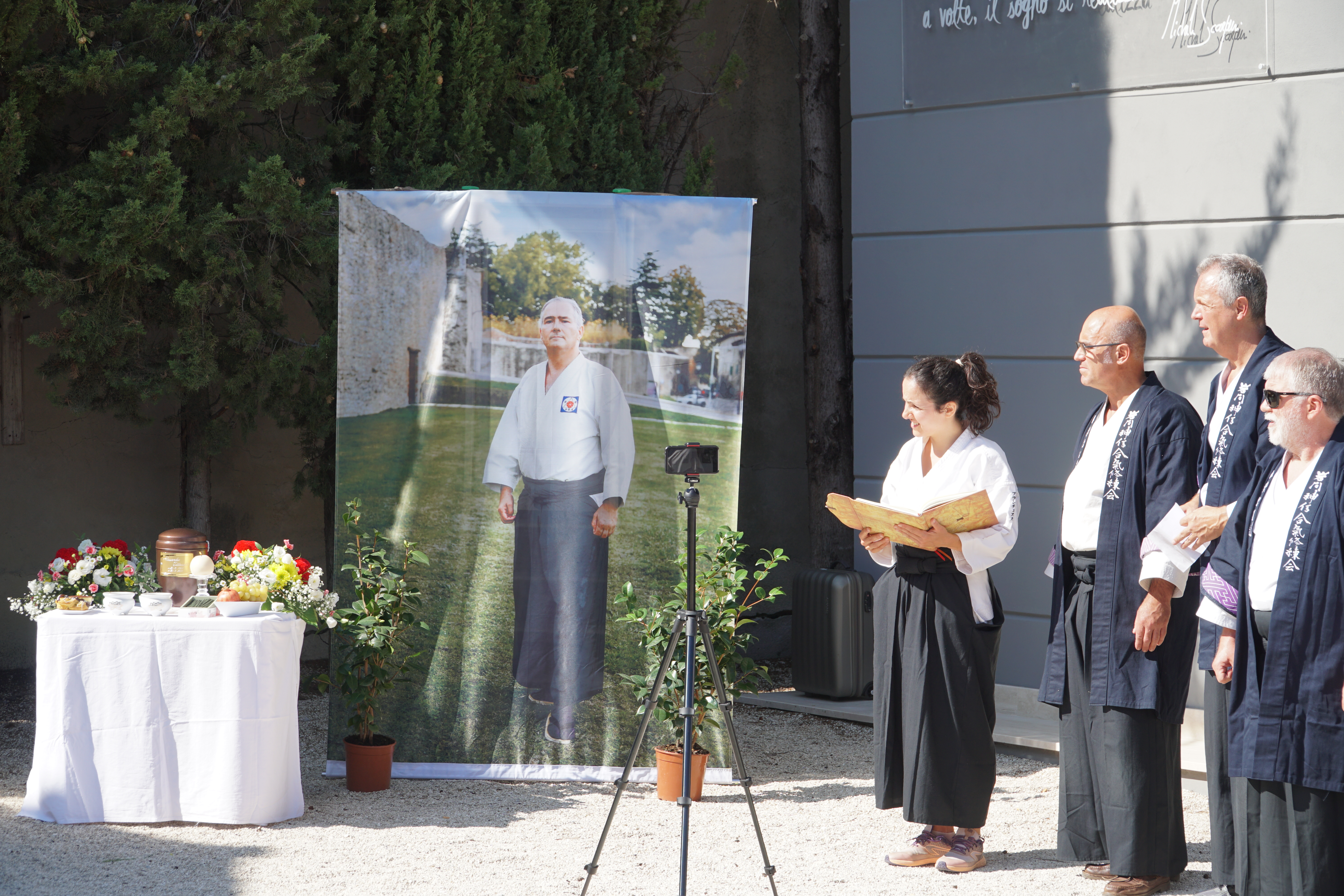 Introdotta in italiano ed in inglese dalla figlia Francesca Tittarelli alla presenza dei famigliari e di tutti i partecipanti al koshukai, la funzione è stata guidata in collegamento diretto dal Tanrenkan dojo di Iwama, Giappone (l’Hombu Dojo dell’Iwama Shin Shin Aiki Shurenkai) dal caposcuola Saito Hitohira Kaicho, che ha recitato le preghiere tradizionali per invocare pace e serenità per l’anima del maestro Tittarelli e per tutti coloro che erano a lui legati.