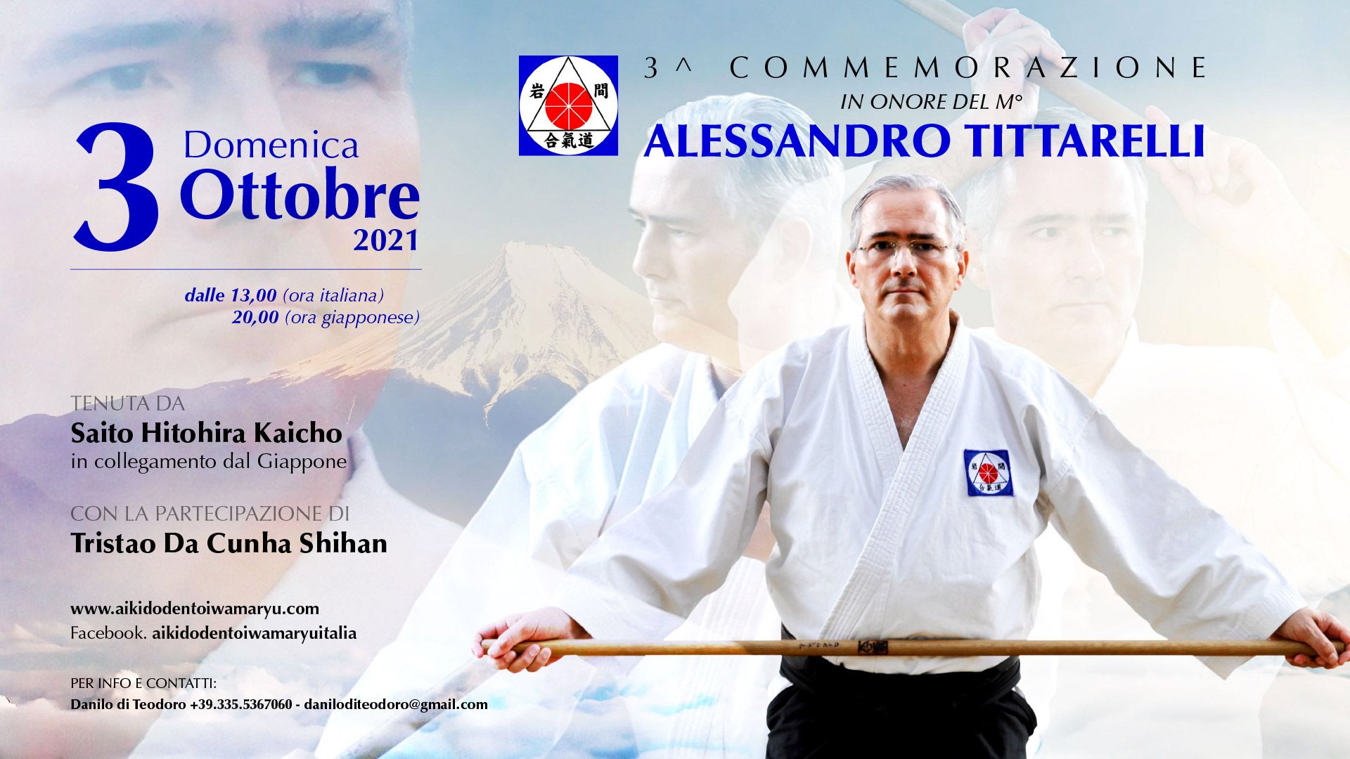 Il 3° Memorial è constato di un seminario di approfondimento tecnico diretto tra sabato e domenica mattina da Tristao Da Cunha Shihan (maestro portoghese VIII dan Dentō Iwama Ryu, l’unico occidentale a detenere attualmente un grado così prestigiosamente elevato in seno alla scuola di Aikido Tradizionale di Iwama) e da una cerimonia nel cimitero di Filottrano (AN) svoltasi nella tarda mattinata di domenica, guidata da Saito Hitohira Kai-cho (il caposcuola dell’Iwama Shin Shin Aiki Shurenkai) in collegamento diretto dal Giappone.