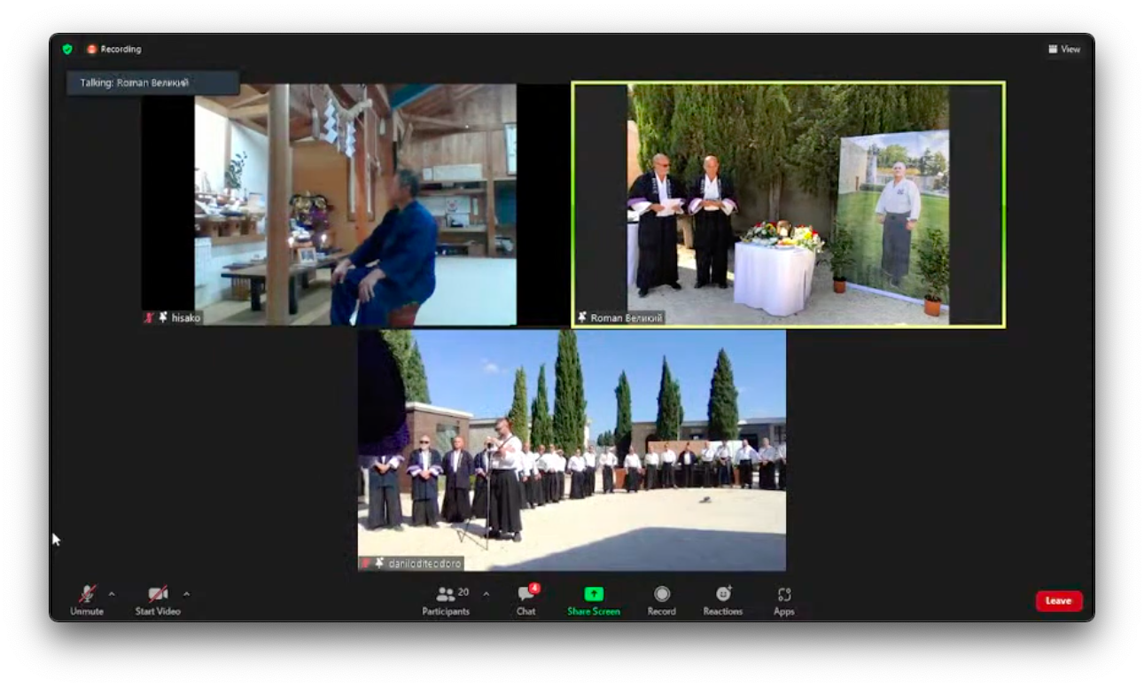 Oltre a Tristao Da Cunha Shihan e da tutti i presenti, da Saito Sensei in collegamento da Iwama coi famigliari, l’evento è stato seguito da moltissimi insegnanti della scuola – sia italiani che internazionali – in collegamento Zoom e da praticanti da ogni parte del pianeta tramite un’apposita diretta YouTube.