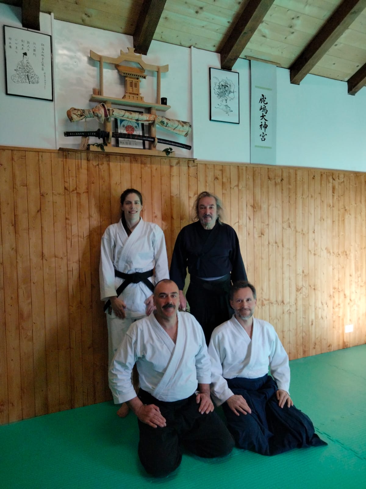 Si tratta di un dojo casalingo, ben realizzato e perfettamente rifinito, con pazienza e dedizione dall’amico Paolo Bertocchi, praticante riconosciuto di Tenshinshō-den Katori Shintō-Ryū e segretario dell’omonima associazione italiana, aikidoka (shodan Dentō Iwama Ryu), mio primo allievo all’allora Sakura Aiki Dojo Trieste ed attuale vicepresidente dell’Iwama Budo Kai a.s.d.