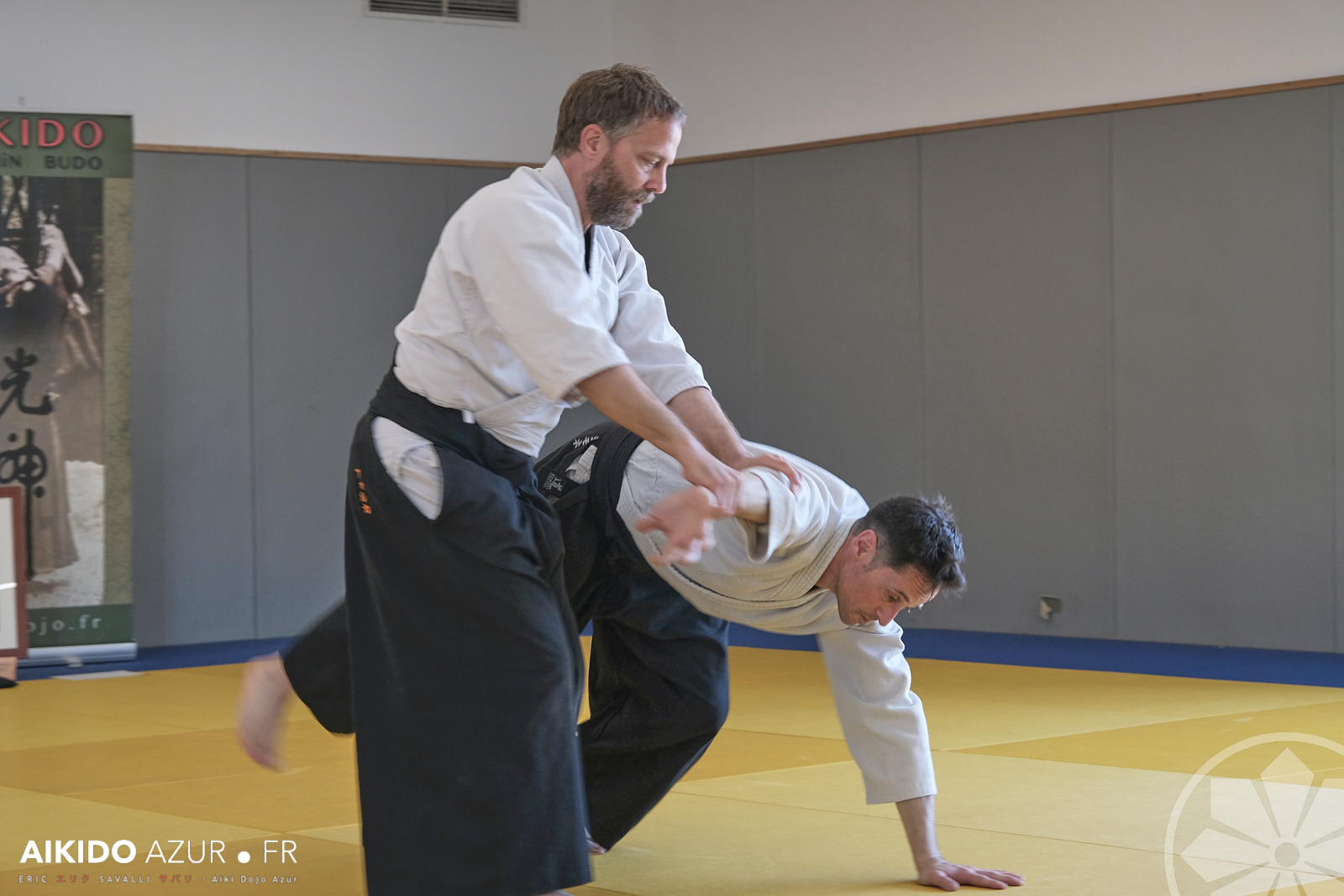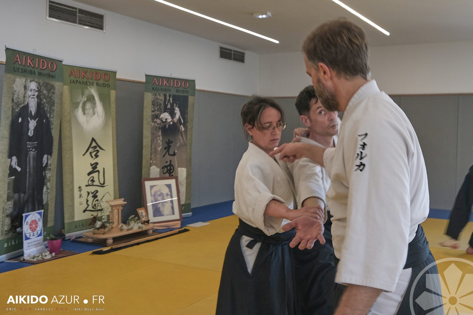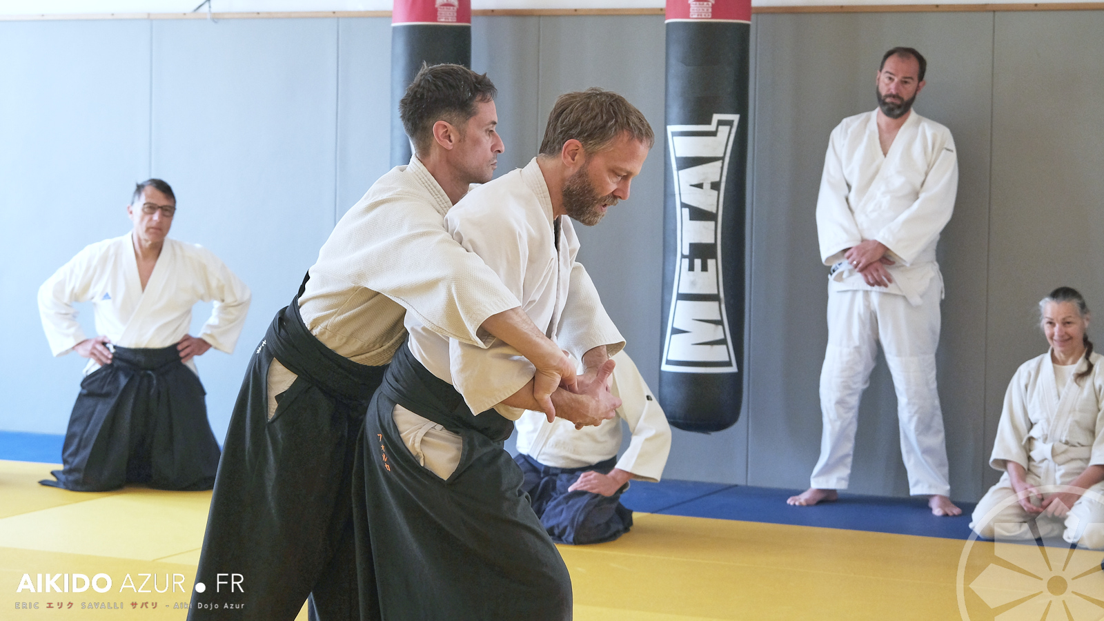 Il maestro è stato invitato a Nizza da Eric Savalli sensei (5° dan Iwama Shin Shin Aiki Shurenkai, già 6° dan del Fundamental Aikido di Daniel Toutain), dojocho – ovvero responsabile del dojo – all’Aikidojo Azur, per conto del quale dirige e coordina corsi di Aikido Tradizionale della Scuola di Iwama, Yoga e Qi Gong in molteplici sedi sparse tra Châteauneuf de Grasse, Roquefort, La Rouret e Sophia (entroterra di Nizza).