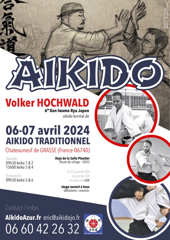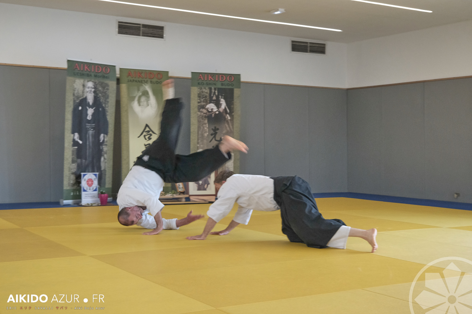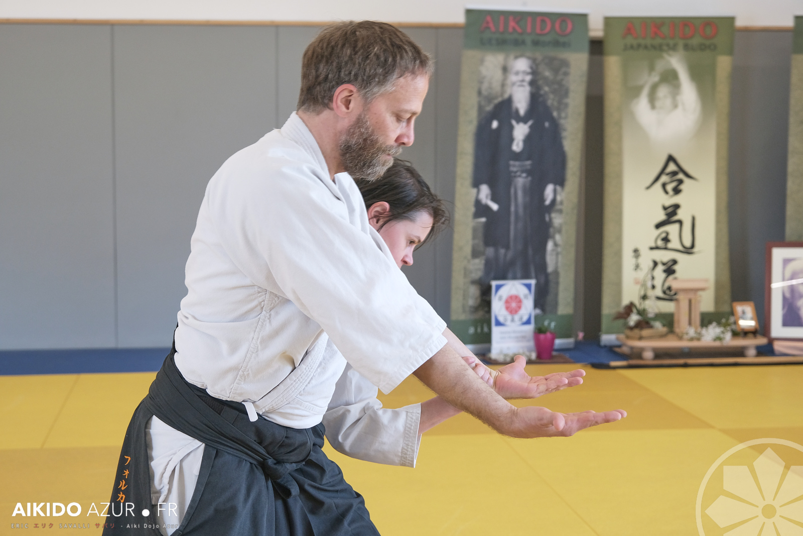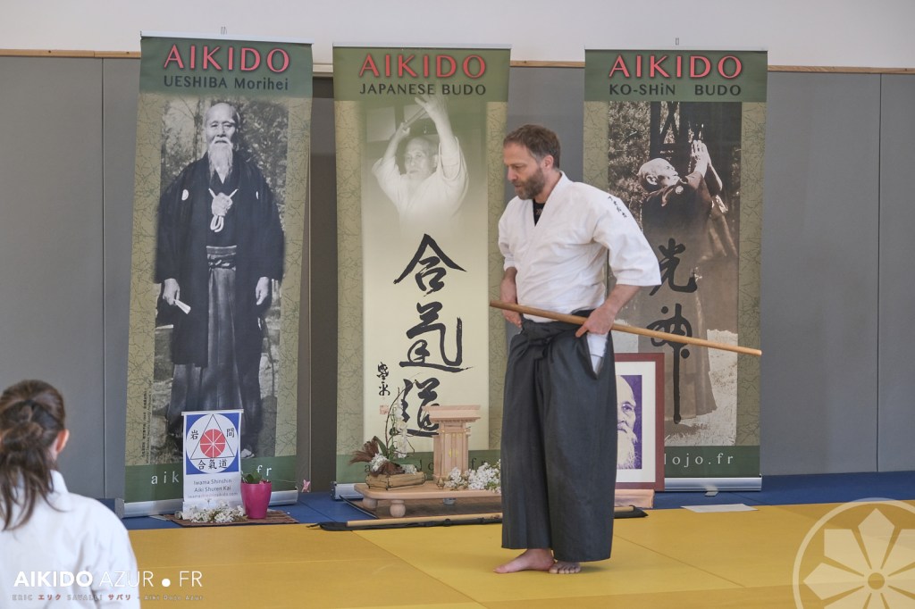Il maestro è stato invitato a Nizza da Eric Savalli sensei (5° dan Iwama Shin Shin Aiki Shurenkai, già 6° dan del Fundamental Aikido di Daniel Toutain), dojocho – ovvero responsabile del dojo – all’Aikidojo Azur, per conto del quale dirige e coordina corsi di Aikido Tradizionale della Scuola di Iwama, Yoga e Qi Gong in molteplici sedi sparse tra Châteauneuf de Grasse, Roquefort, La Rouret e Sophia (entroterra di Nizza).