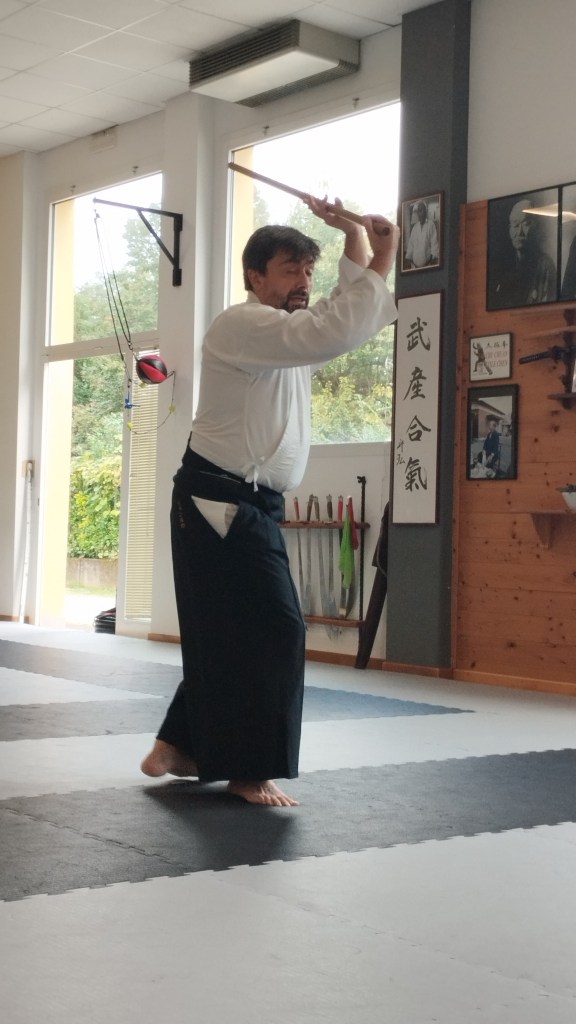 Oltre ad una conoscenza tecnica e ad una capacità didattica di alto livello, anche frutto delle sue annuali e ripetute esperienze di permanenza e studio all’hombu dojo di Iwama quale uchideshi (allievo interno residente) di Saito Hitohira Sensei e di Saito Morihiro Nidaime (Yasuhiro) Waka-sensei, il maestro ha fatto dono ai presenti di numerose chiavi interpretative e di lettura dei singoli gesti tecnici che riportano – effettivamente e non solo a parole – la pratica dell’Aikido di Iwama sotto l’egida dinamica del principio di riai per il quale ken, tai, jo zenbu onagi desu (ovvero: i movimenti eseguiti con la spada, con il jo e a mani nude, nell’Aikido seguono i medesimi principi).