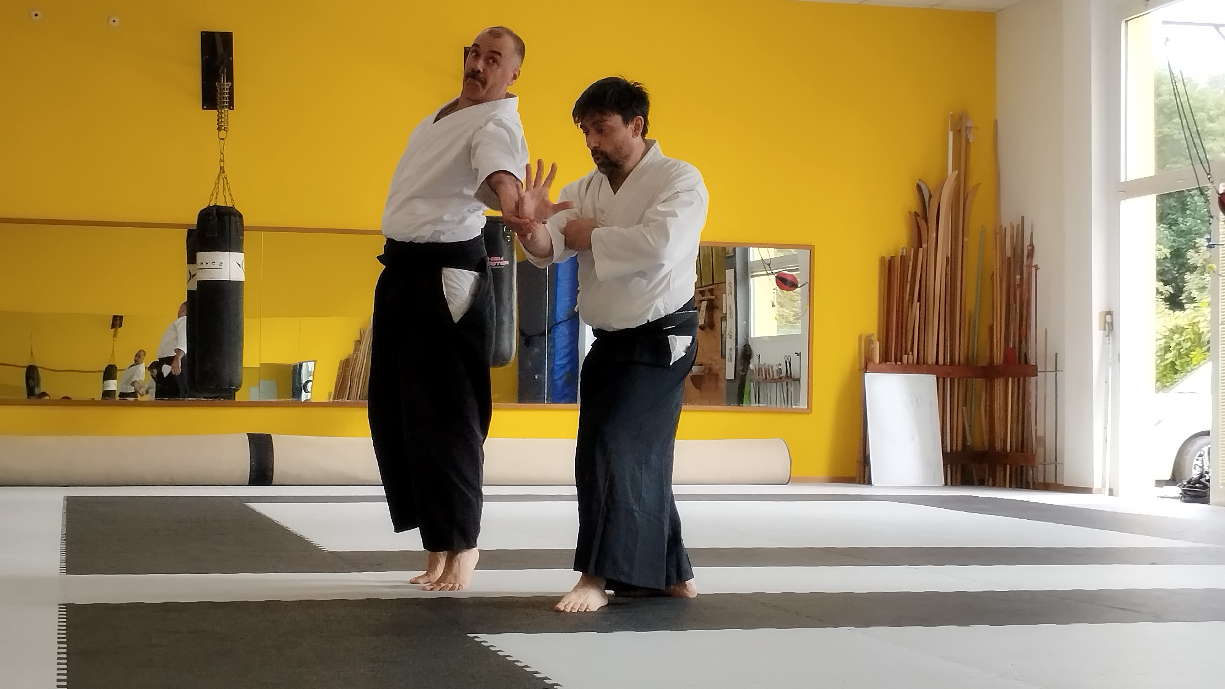 Oltre ad una conoscenza tecnica e ad una capacità didattica di alto livello, anche frutto delle sue annuali e ripetute esperienze di permanenza e studio all’hombu dojo di Iwama quale uchideshi (allievo interno residente) di Saito Hitohira Sensei e di Saito Morihiro Nidaime (Yasuhiro) Waka-sensei, il maestro ha fatto dono ai presenti di numerose chiavi interpretative e di lettura dei singoli gesti tecnici che riportano – effettivamente e non solo a parole – la pratica dell’Aikido di Iwama sotto l’egida dinamica del principio di riai per il quale ken, tai, jo zenbu onagi desu (ovvero: i movimenti eseguiti con la spada, con il jo e a mani nude, nell’Aikido seguono i medesimi principi).