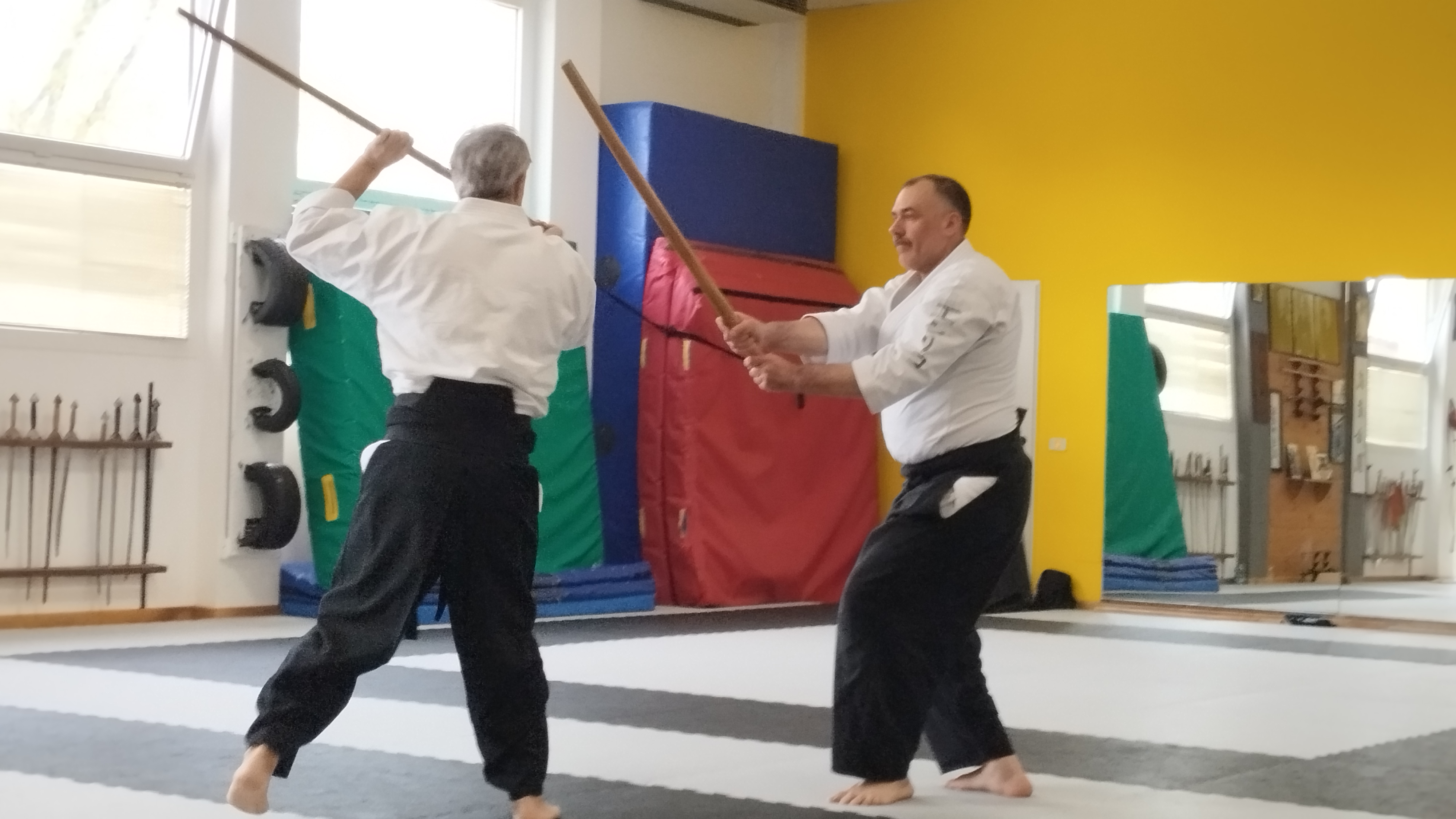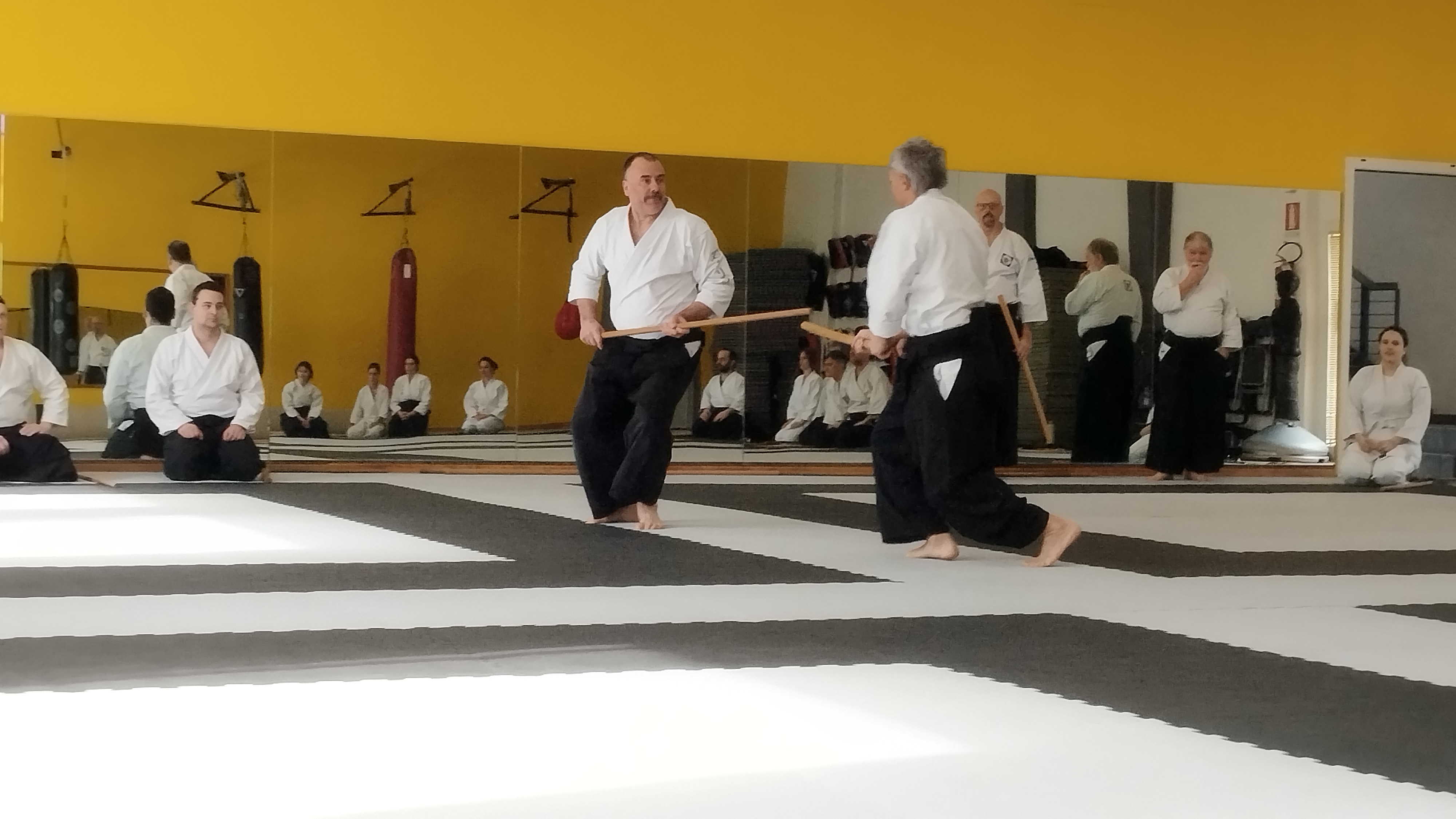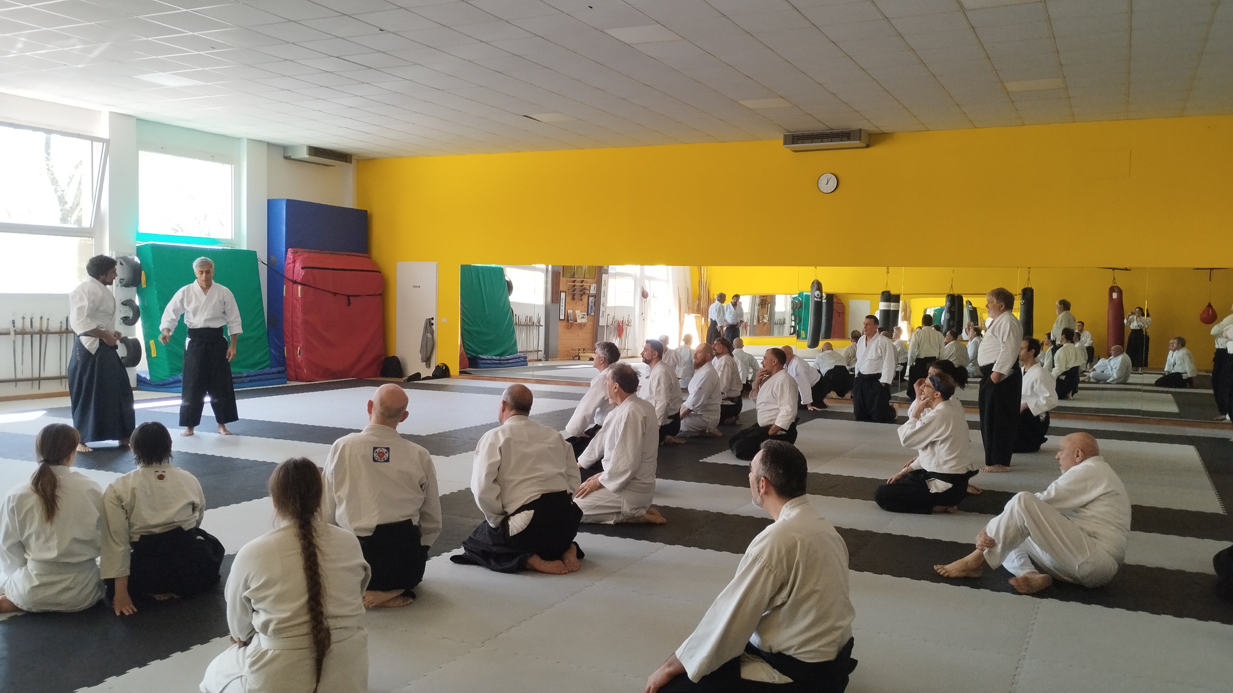 Come d’uso, il programma del koshukai ha alternato sessioni di pratica con le armi tradizionali dell’Aikido a keiko (sedute di pratica) a mani nude. Per la parte di bukiwaza – ovvero pratica con le armi – è stato affrontato lo studio dei kumijo 6 e 7 – si tratta di forme tradizionali codificate di studio a coppie delle tecniche con il jo, il bastone dell’Aikido -, dei disarmi tachidori – ovvero la difesa disarmata da un attacco con la katana – sul lato destro dell’attaccante – e, quindi, dei 7 kentaijo – studio codificato dei metodi di difesa con il bastone jo da un attacco con la katana -. Per il taijutsu – le tecniche di combattimento a mani nude – invece, sono stati affrontati lo studio di ikkyo e sankyo – il primo e, rispettivamente, terzo principio di controllo ed immobilizzazione – omote e ura e, quindi, un approfondimento su varie forme di kotegaeshi.