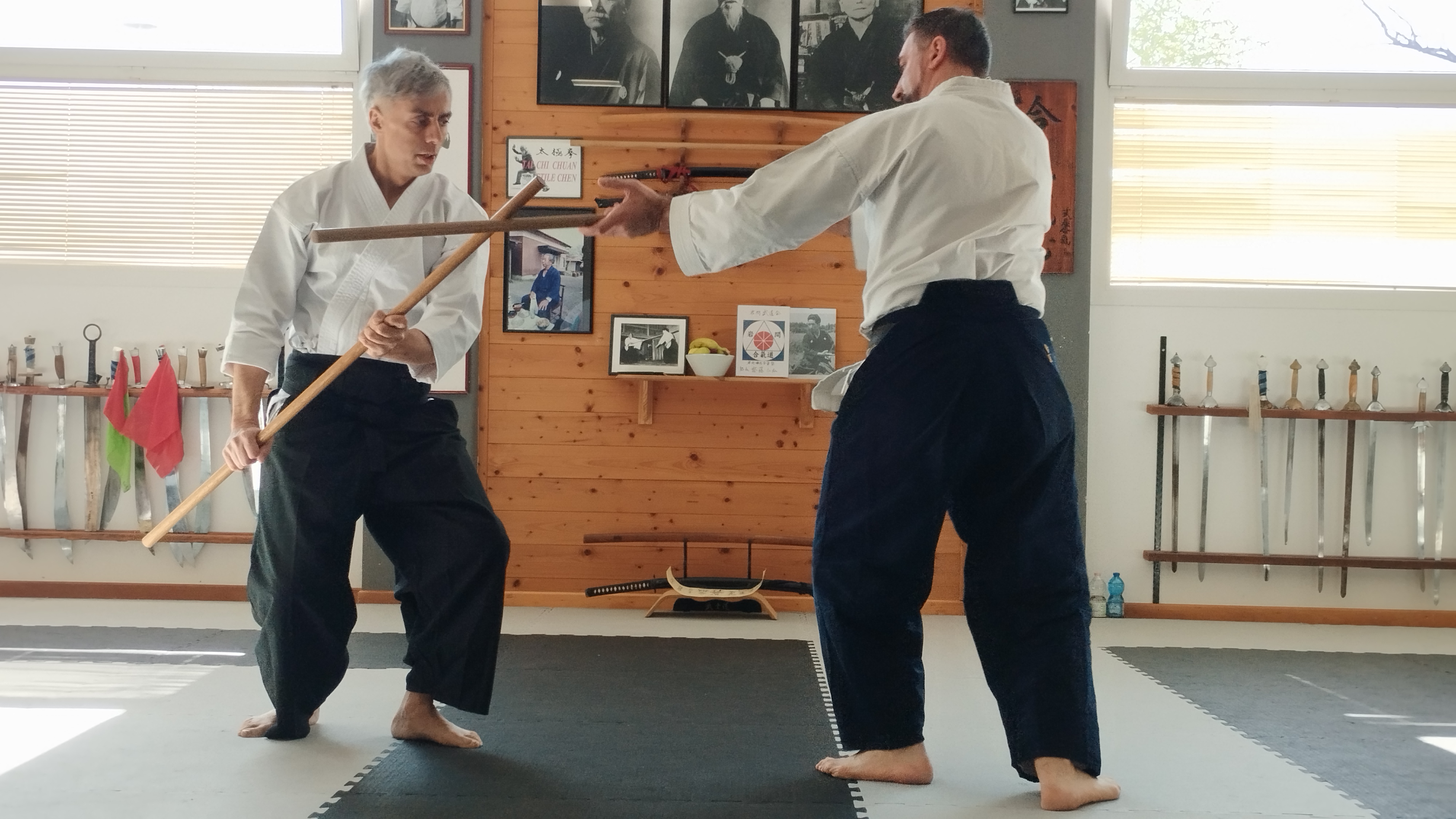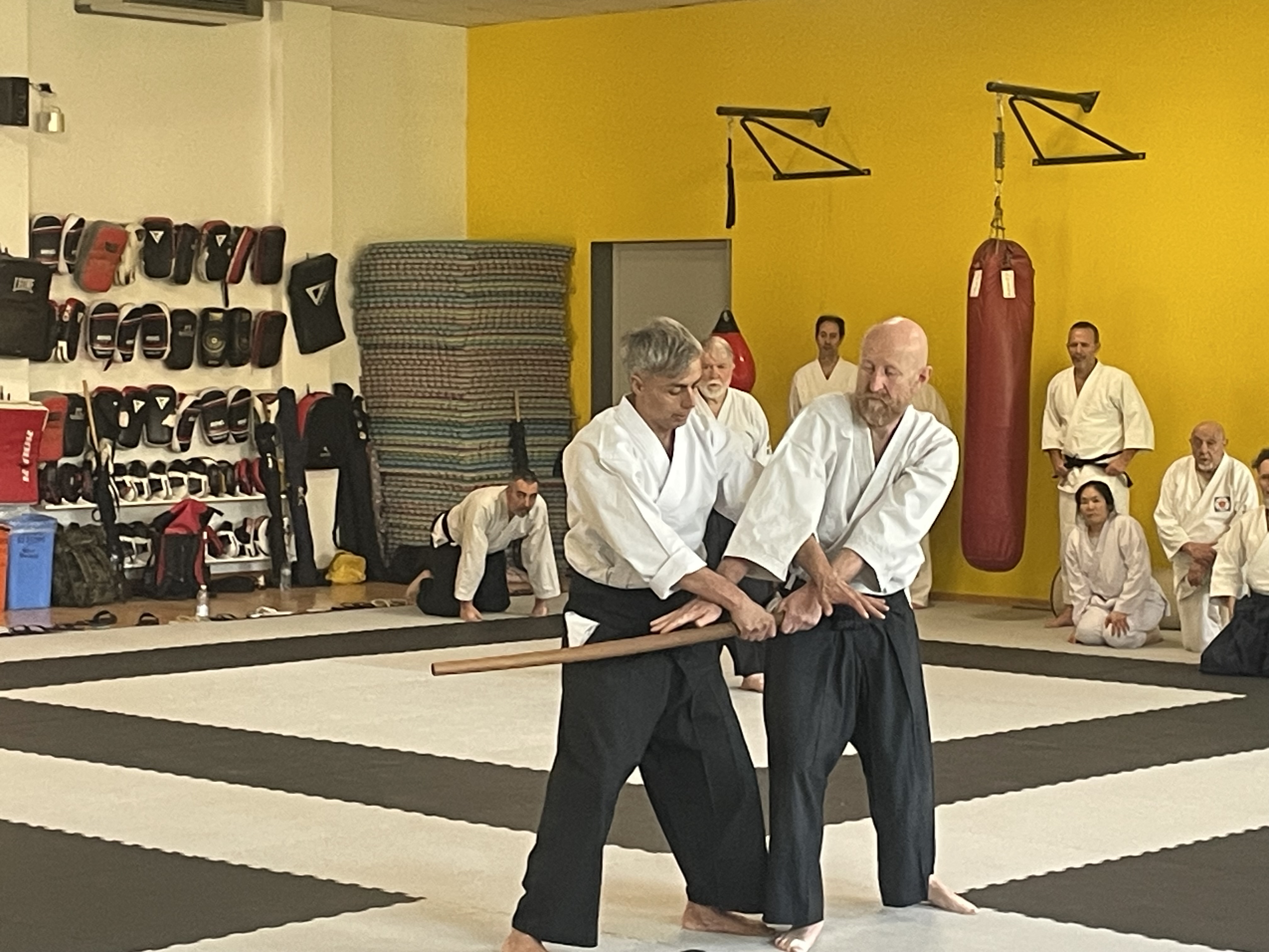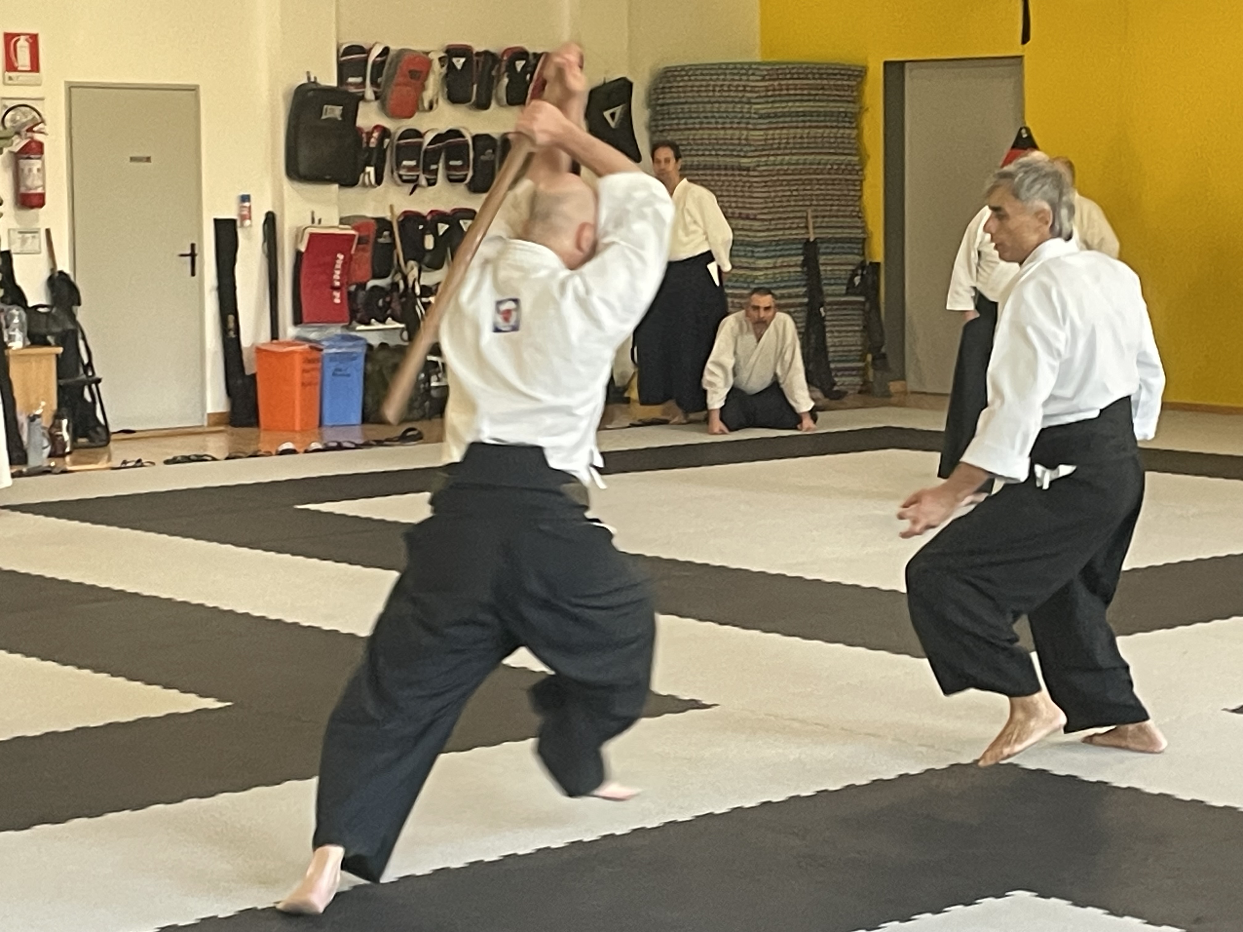 Come d’uso, il programma del koshukai ha alternato sessioni di pratica con le armi tradizionali dell’Aikido a keiko (sedute di pratica) a mani nude. Per la parte di bukiwaza – ovvero pratica con le armi – è stato affrontato lo studio dei kumijo 6 e 7 – si tratta di forme tradizionali codificate di studio a coppie delle tecniche con il jo, il bastone dell’Aikido -, dei disarmi tachidori – ovvero la difesa disarmata da un attacco con la katana – sul lato destro dell’attaccante – e, quindi, dei 7 kentaijo – studio codificato dei metodi di difesa con il bastone jo da un attacco con la katana -. Per il taijutsu – le tecniche di combattimento a mani nude – invece, sono stati affrontati lo studio di ikkyo e sankyo – il primo e, rispettivamente, terzo principio di controllo ed immobilizzazione – omote e ura e, quindi, un approfondimento su varie forme di kotegaeshi.