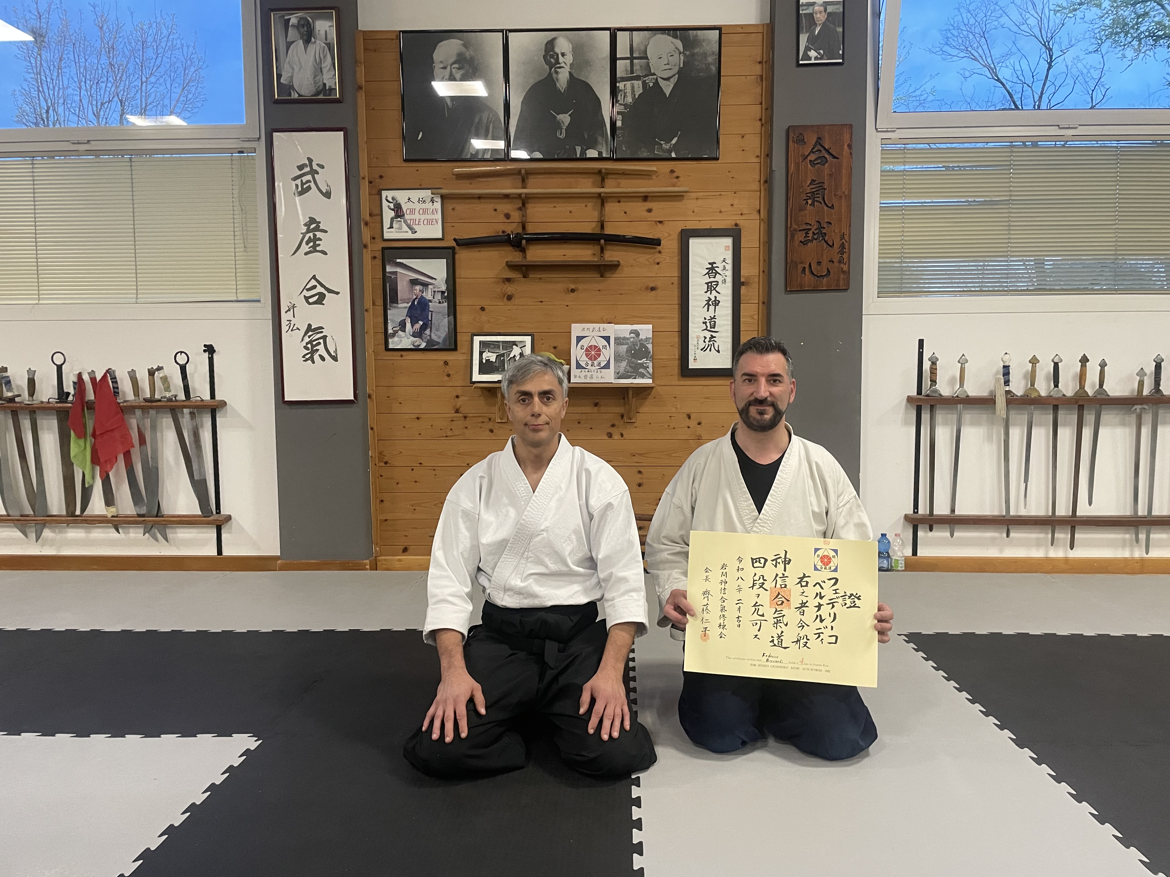 Al termine della giornata di pratica e studio del sabato si è anche svolta una breve cerimonia per il conferimento, a nome e per conto di Saito Hitohira Jukucho, del diploma di 4° dan ISSASK a Federico Bernardi, il quale aveva sostenuto l’esame – l’ultimo previsto per i gradi ISSASK conseguibili venendo esaminati su un programma tecnico – in occasione del seminario interregionale di Colorno (PR) dello scorso dicembre.